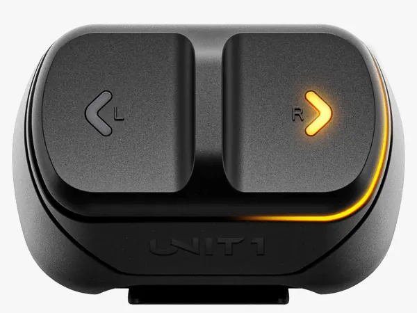 Met de knipperlicht remote van Stromer activeer en bedien je de knipperlichten die zich in het achterlicht van de Aura Stromer Smart helmet bevinden. Deze lichten dan links of rechts in het oranje op.